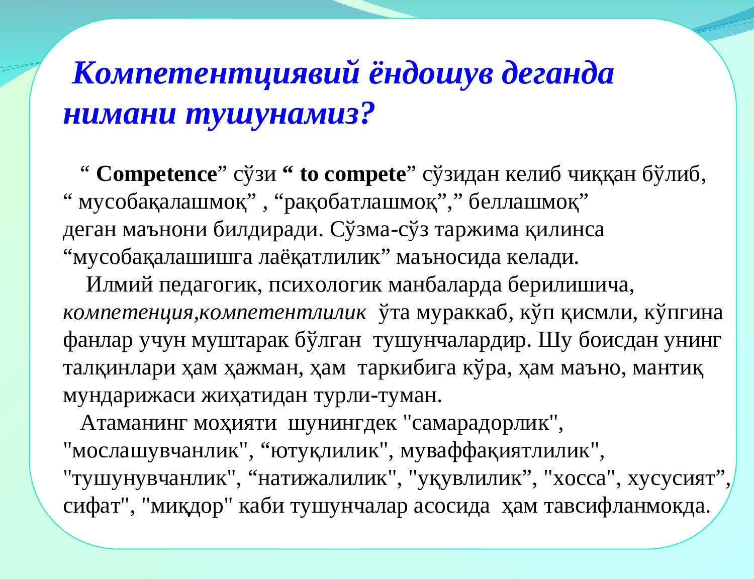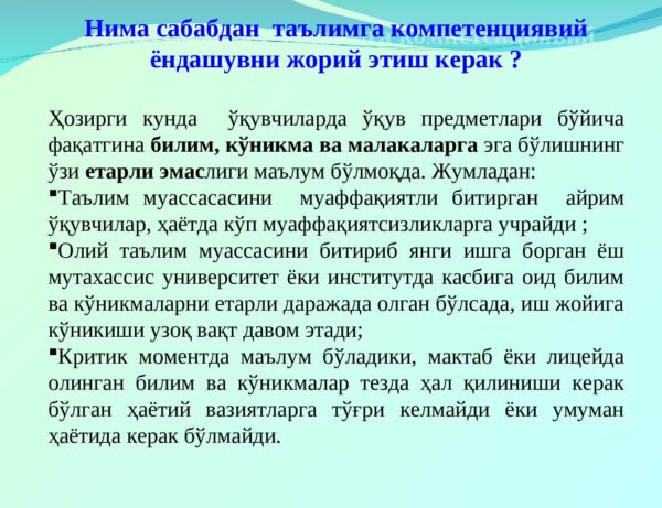 Нима сабабдан таълимга компетенциявий ёндашувни жорий этиш керак ?