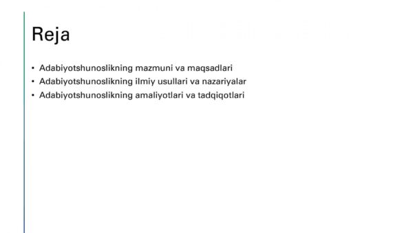 3. Adabiyotshunoslikning amaliyotlari va tadqiqotlari