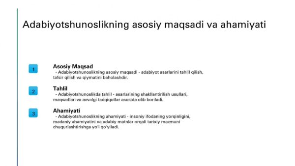 1. Adabiyotshunoslikning mazmuni va maqsadlari