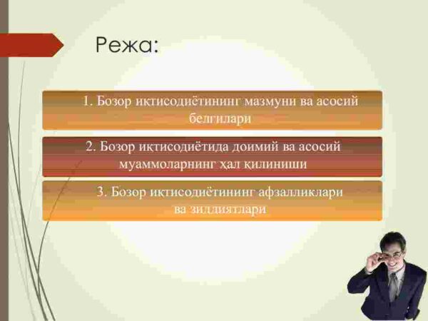 3. Bozor iqtisodiyotining afzalliklari va ziddiyatlari.