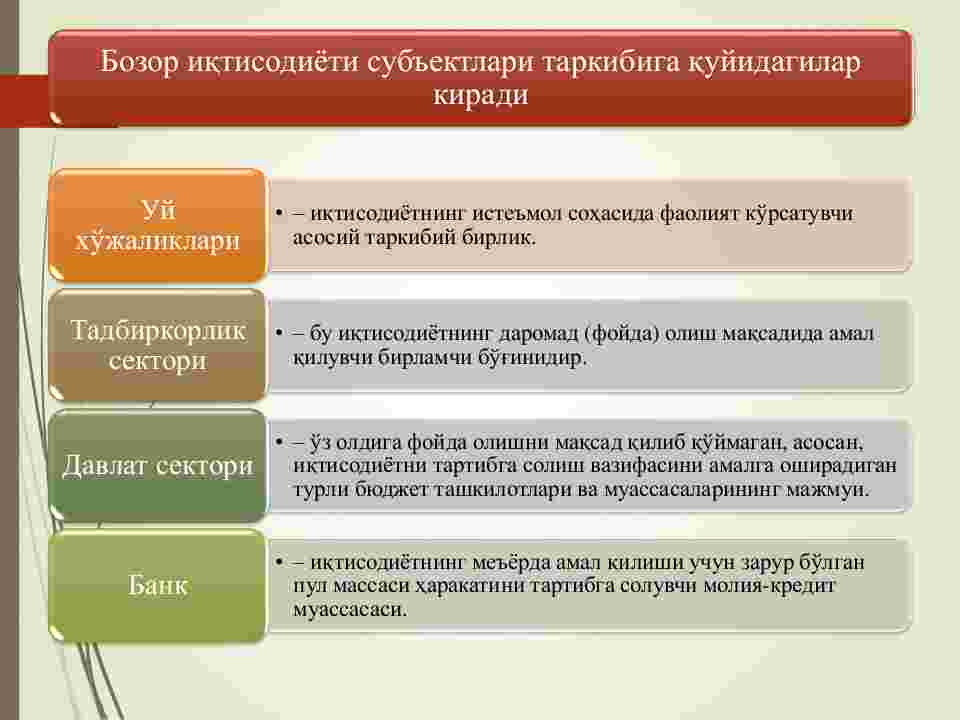 1. Bozor iqtisodiyotining mazmuni va asosiy belgilari.