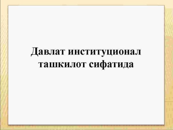 2. Davlatning institutsional tabiati.