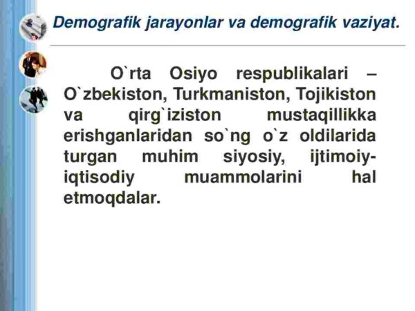 3. O`rta Osiyo respublikalarida demografik vaziyat.