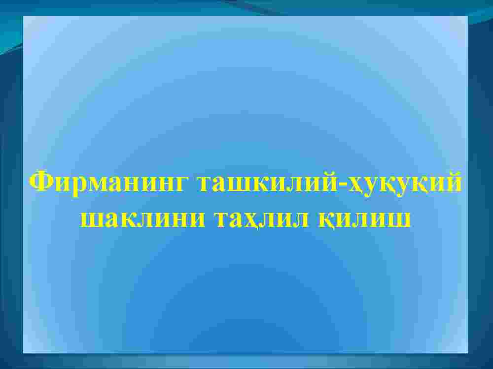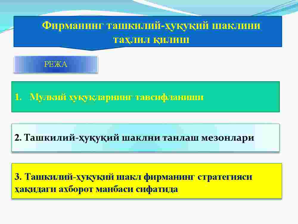 2. Tashkiliy-huquqiy shaklni tanlash mezonlari.