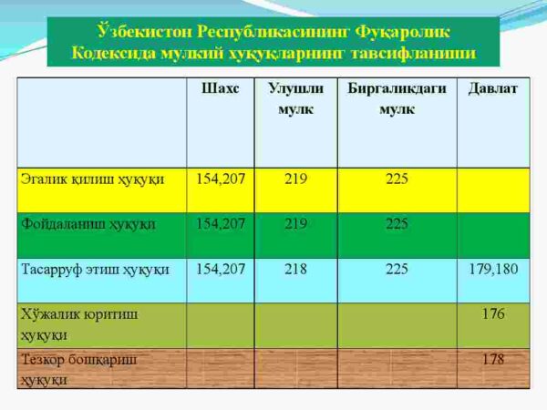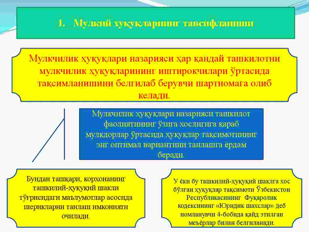 1. Mulkiy xuquqlarning tavsiflanishi.