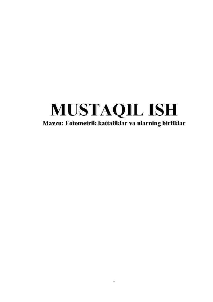5. Yorug‘lik o‘lchashlarida ishlatiladigan birliklar