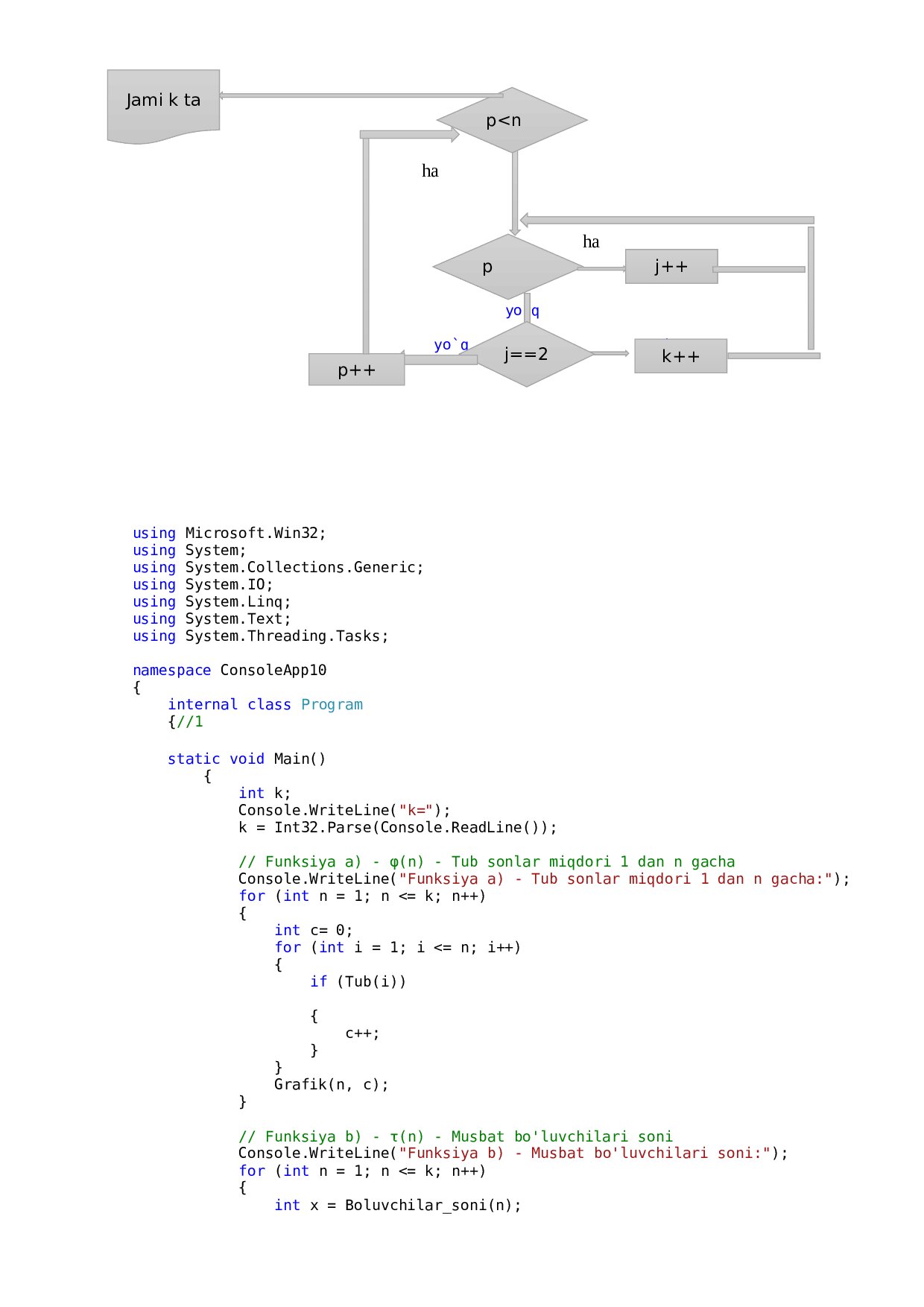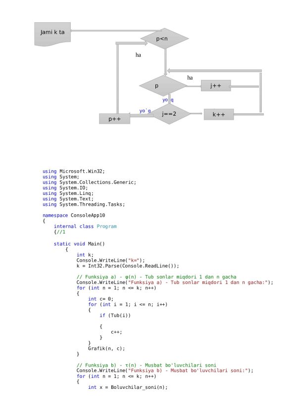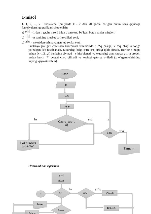 1. 1, 2, …, k nuqtalarda (bu yerda k – 2 dan 70 gacha bo‘lgan butun son) quyidagi funksiyalarning grafiklari chop etilsin: