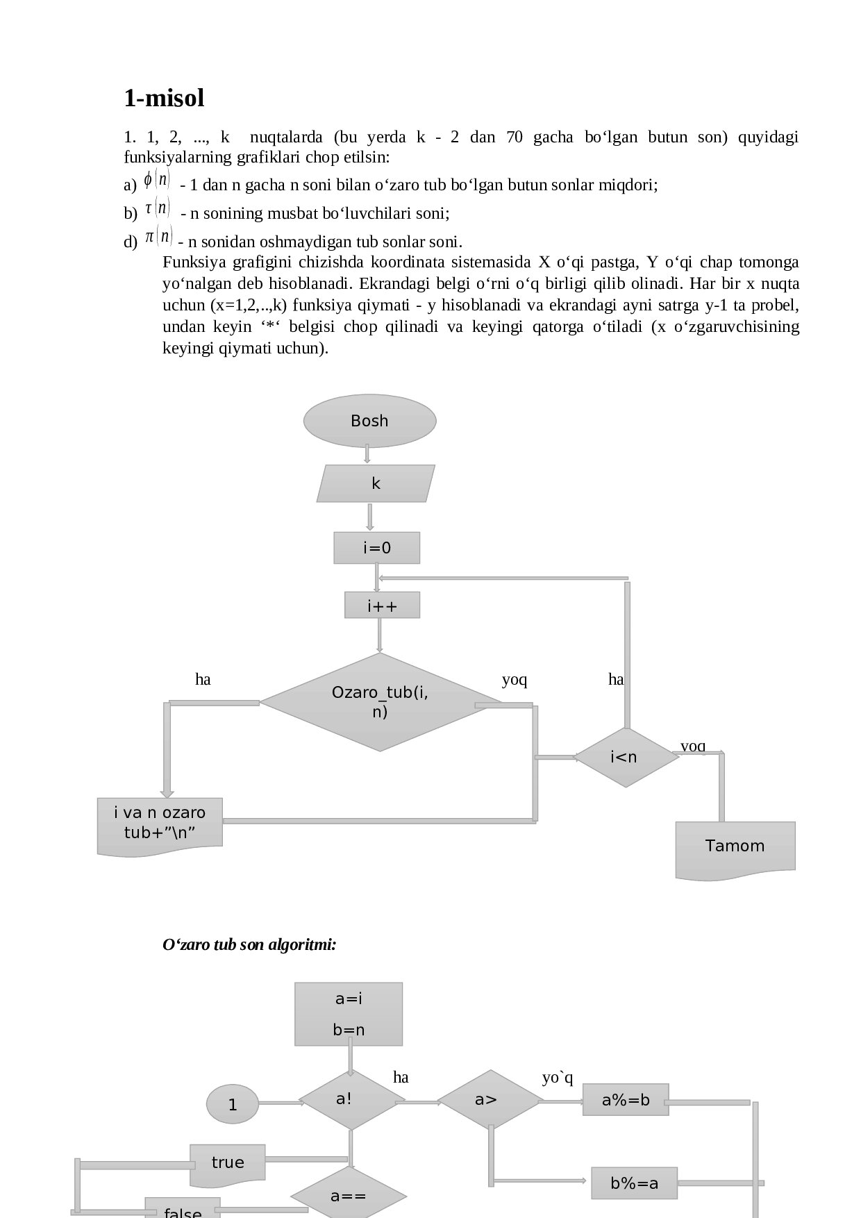 a) – 1 dan n gacha n soni bilan o‘zaro tub bo‘lgan butun sonlar miqdori;
