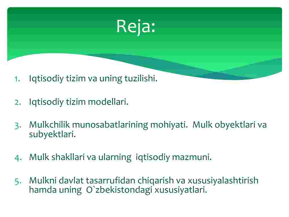 Mulk shakllari va ularning iqtisodiy mazmuni.