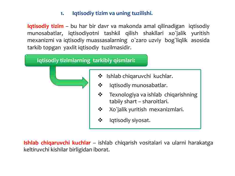 Iqtisodiy tizim va uning tuzilishi.