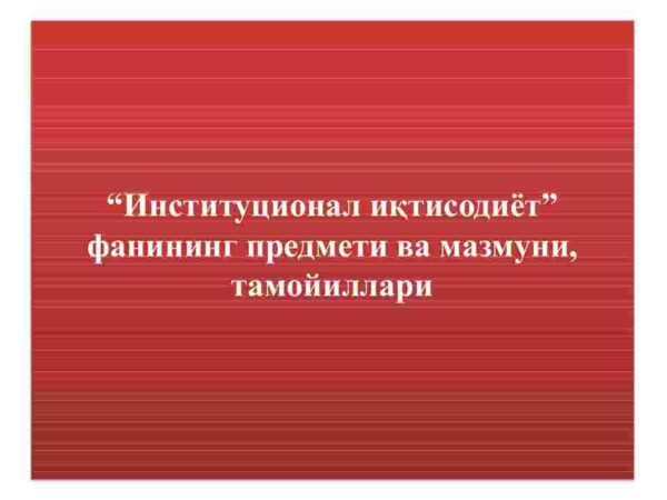 4. Institusional iqtisodiyotning rivojlanish xususiyatlari