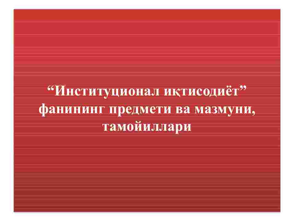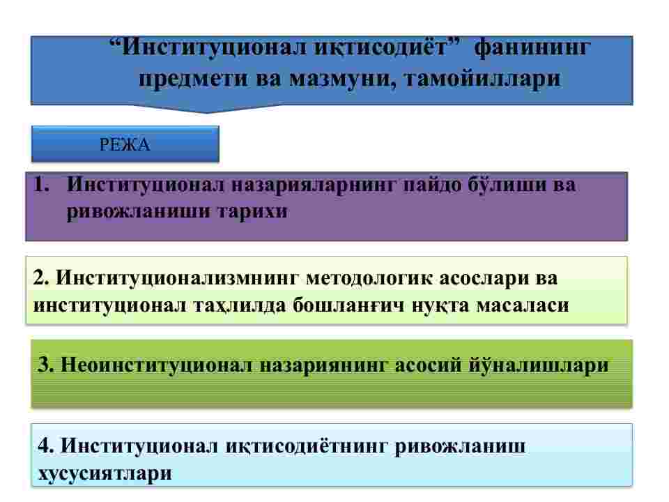 3. Neoinstitusional nazariyaning asosiy yo’nalishlari