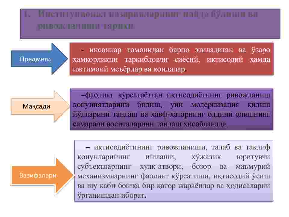 1. Institusional nazariyalarning paydo bo’lishi va rivojlanishi tarixi
