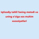 Reja: 1. Iqtisodiy tahlil fanining mazmuni 2. Asosiy vazifalari 3. Metodologik asoslari