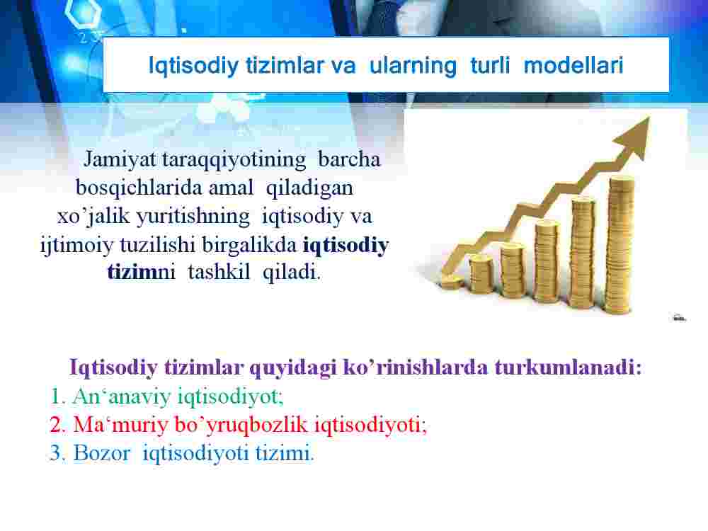 2. Iqtisodiy tizimlar va ularning turli modellari