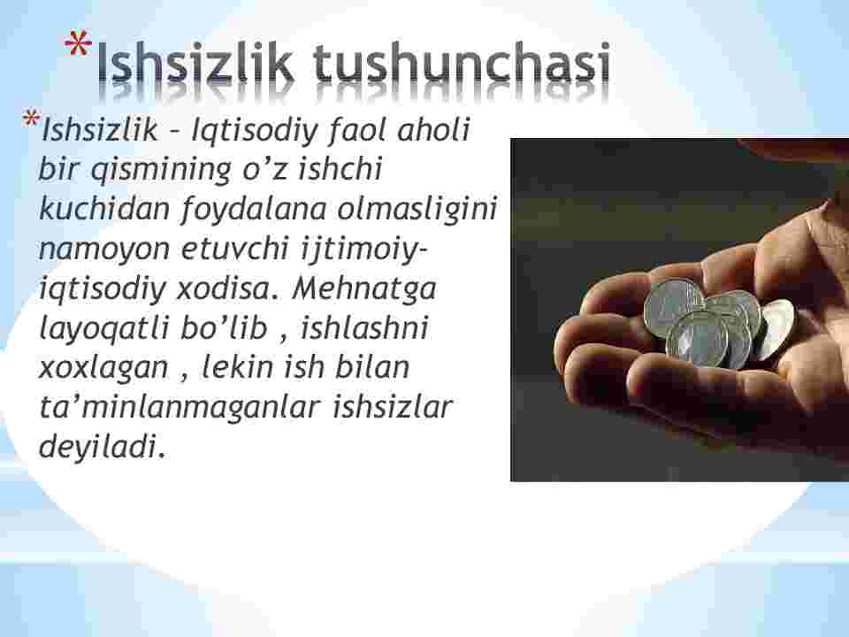 1. Ishsizlik tushunchasi va uning turlari.