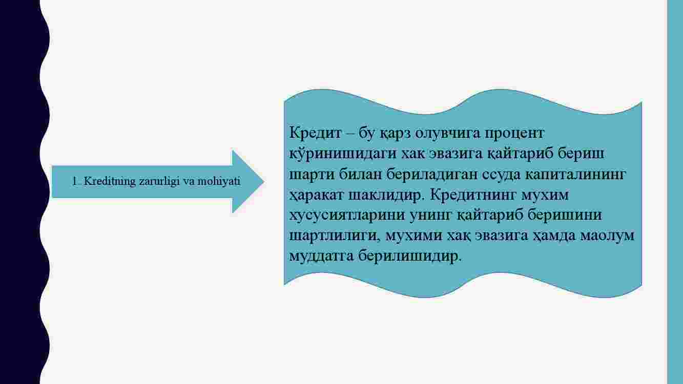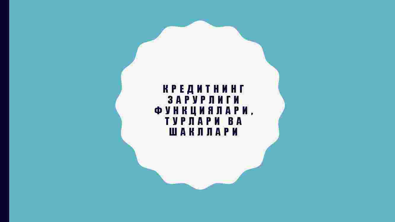 3. Kreditni asosiy funksiyalari va tashkil qilish asoslari.