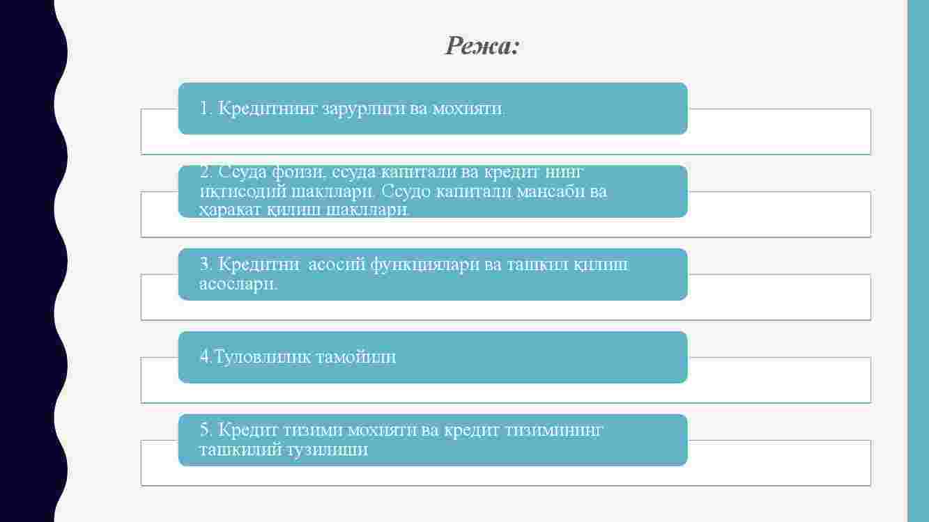 5. Kredit tizimi mohiyati va kredit tizimining tashkiliy tuzilishi.