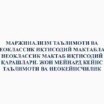 Reja: 1. Marjinalizm va meyorli foydalilik Nazariyasi. 2. Meyorli tahlilning dastlabki tadqiqotchilari 3. Marjinalizm unumdorlik Nazariyasi.