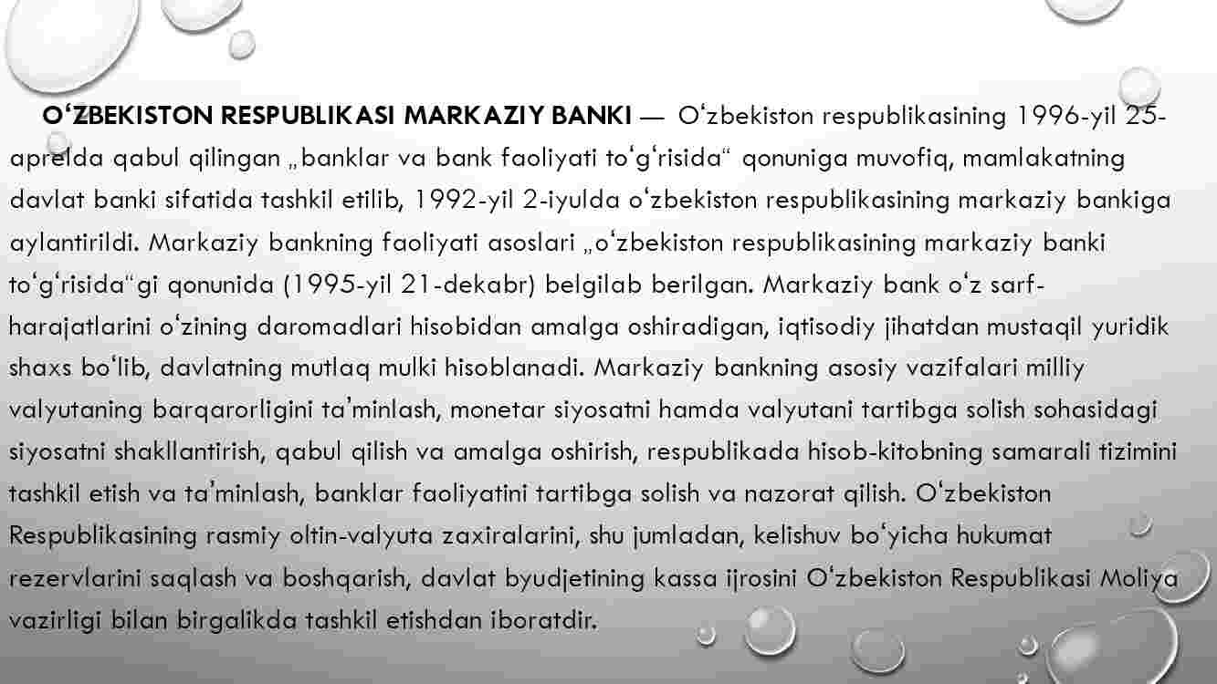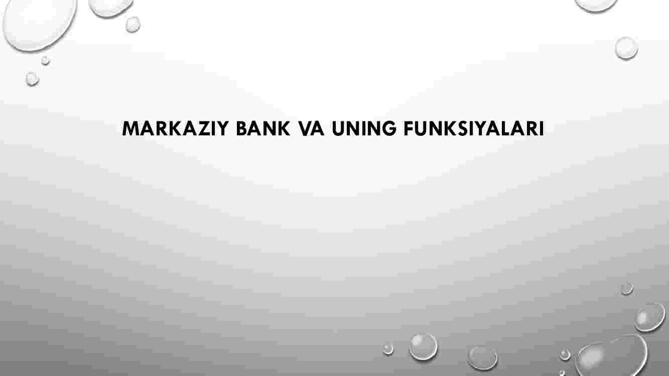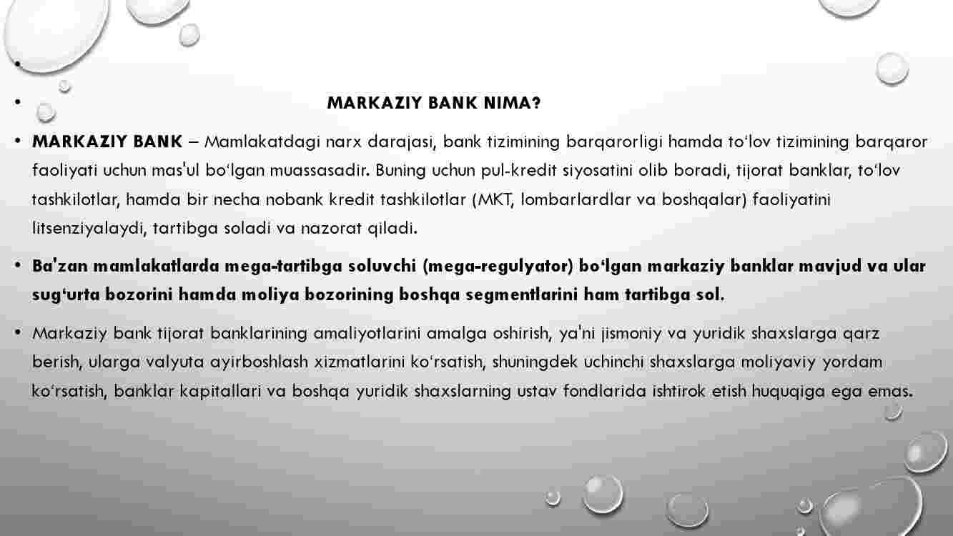 1. Markaziy bank nima? Markaziy bank foaliyatini maqsadi.