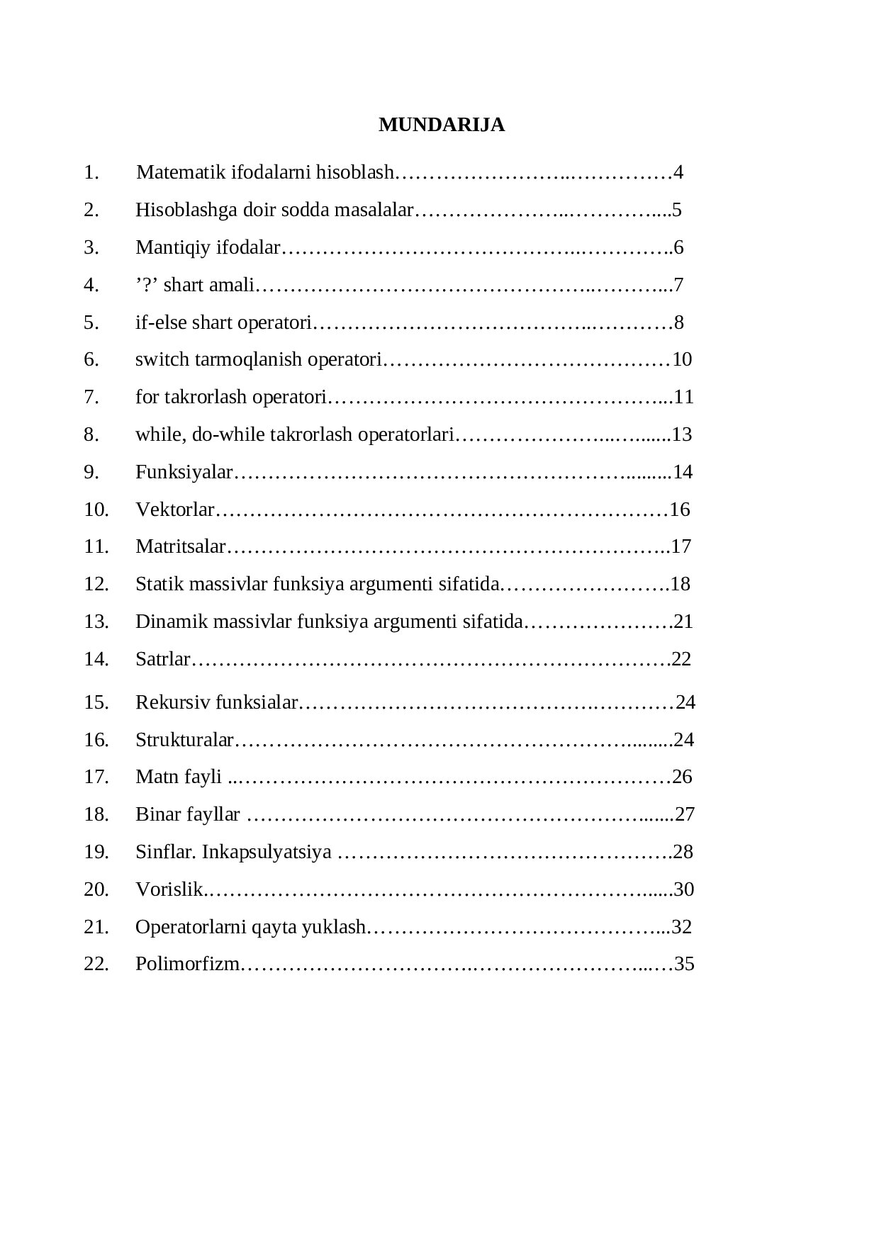 8. while, do-while takrorlash operatorlari…………………………….13