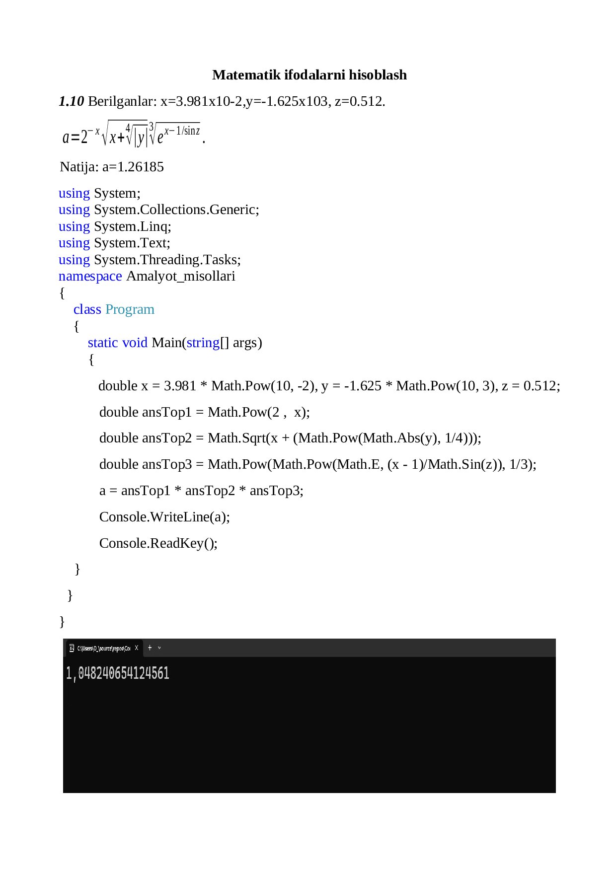 1. Matematik ifodalarni hisoblash……………………..……………4