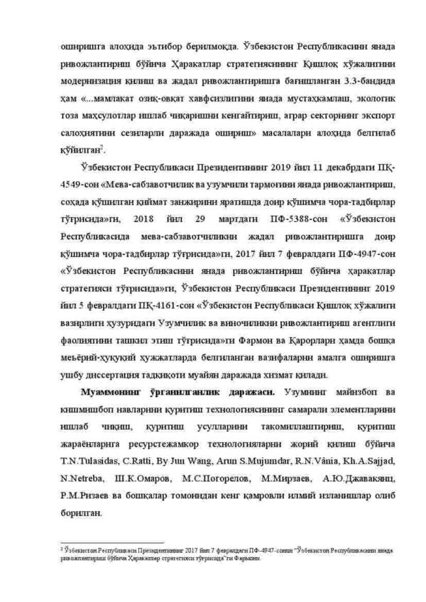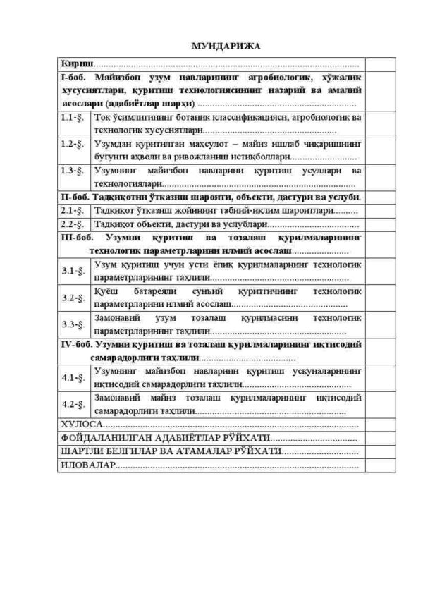 I-bob. Mayizbop uzum navlarining agrobiologik, xo‘jalik xususiyatlari, quritish texnologiyasining nazariy va amaliy asoslari (adabiyotlar sharhi)
