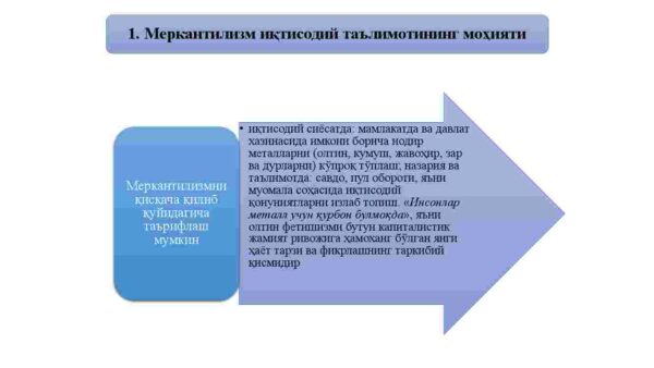 1. Merkantilizm iqtisodiy ta’limotining mohiyati.