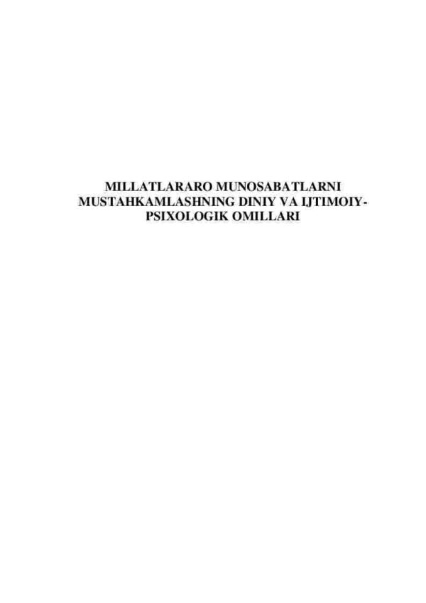 I BOB. MILLATLARARO MUNOSABATLARNING SIYOSIY, DINIY, IJTIMOIY HAMDA PSIXOLOGIK JIHATDAN O’RGANILGANLIGI