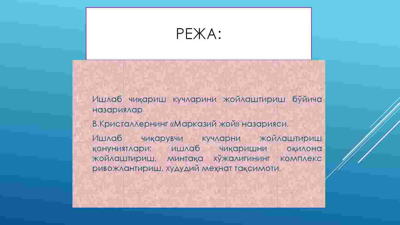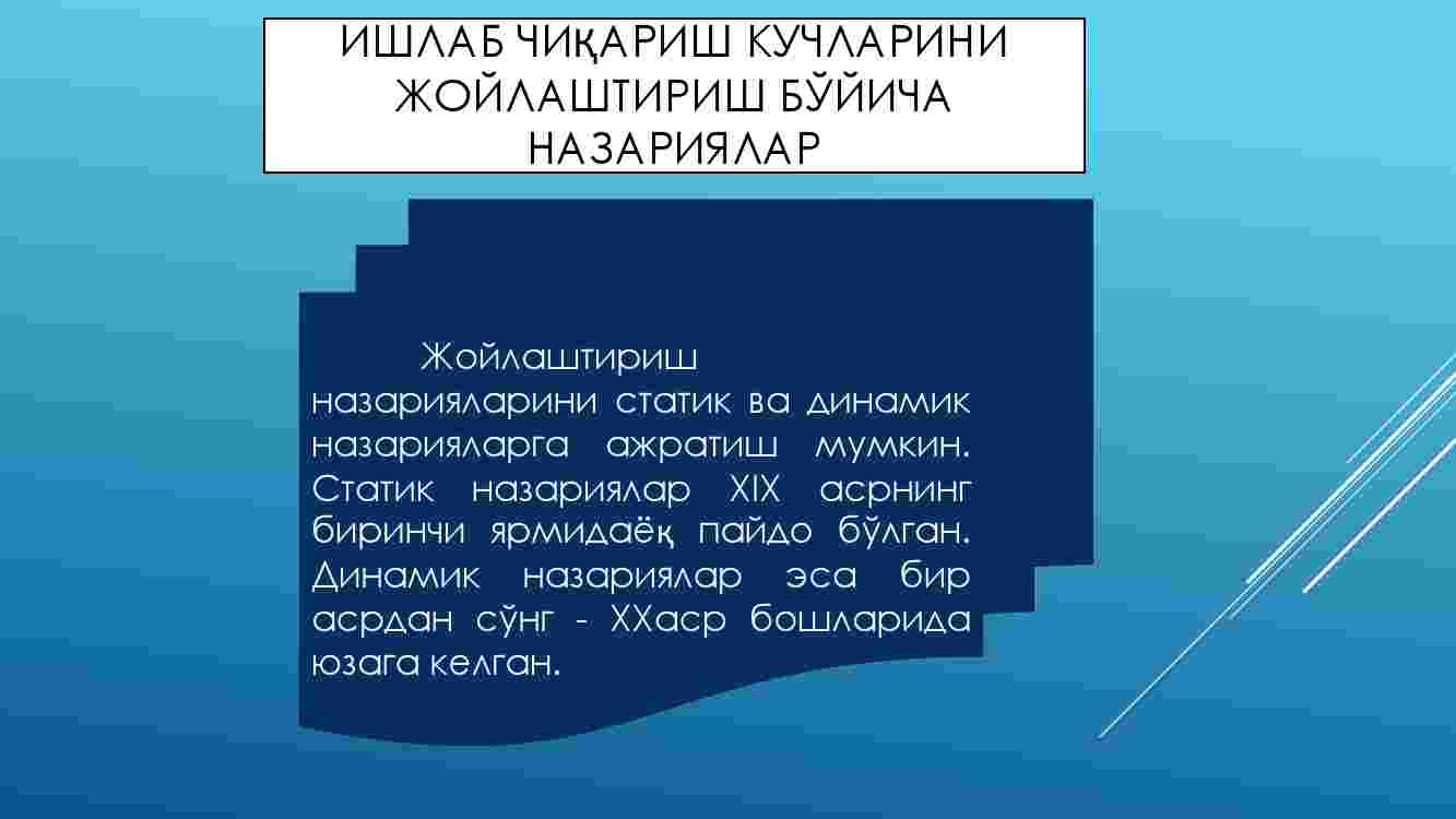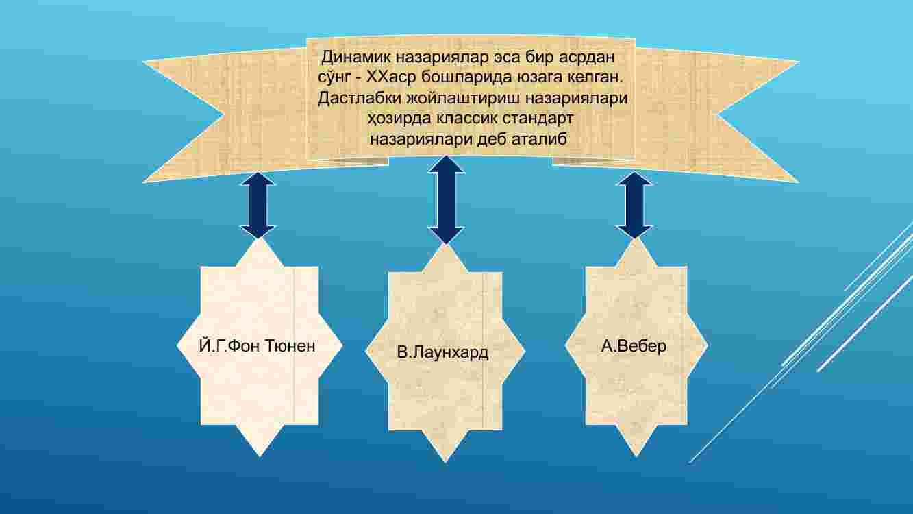 1. Ishlab chiqarish kuchlarini joylashtirish bo’yicha nazariyalar.