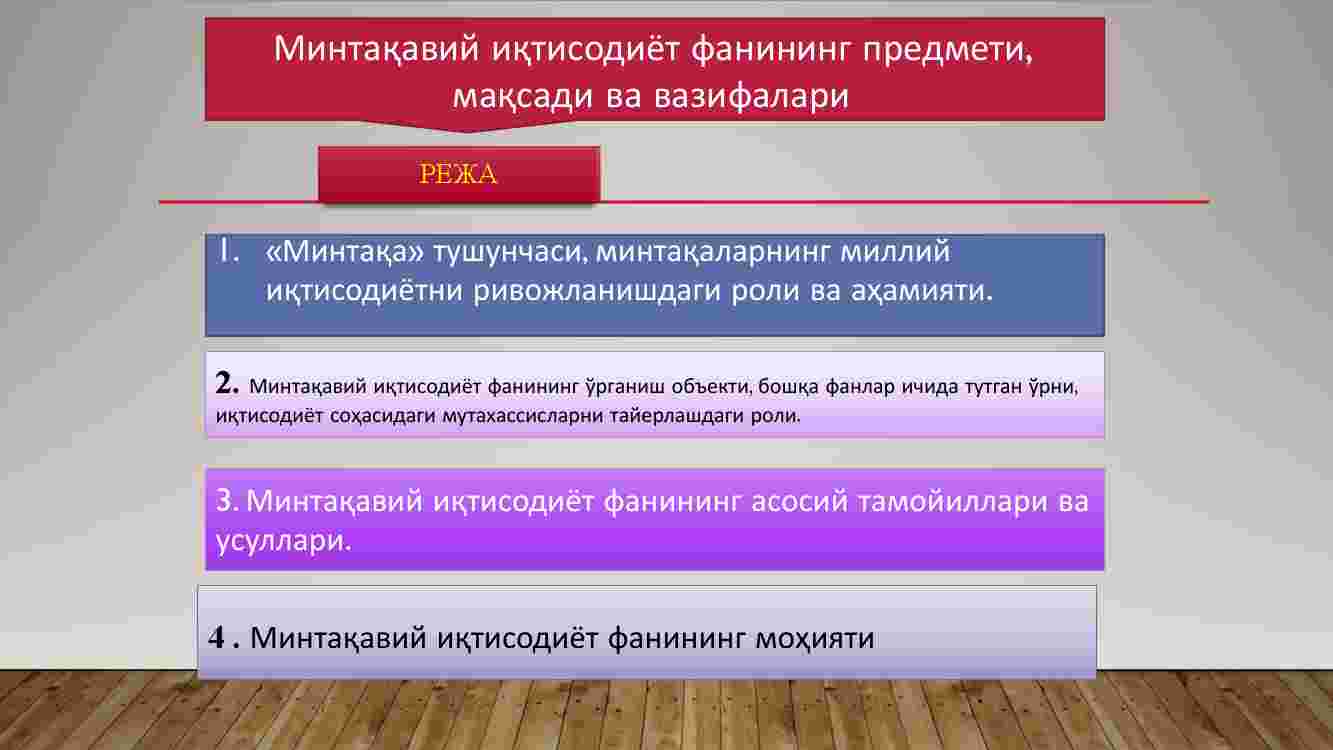 3. Mintaqaviy iqtisodiyot fanining asosiy tamoyillari va usullari.