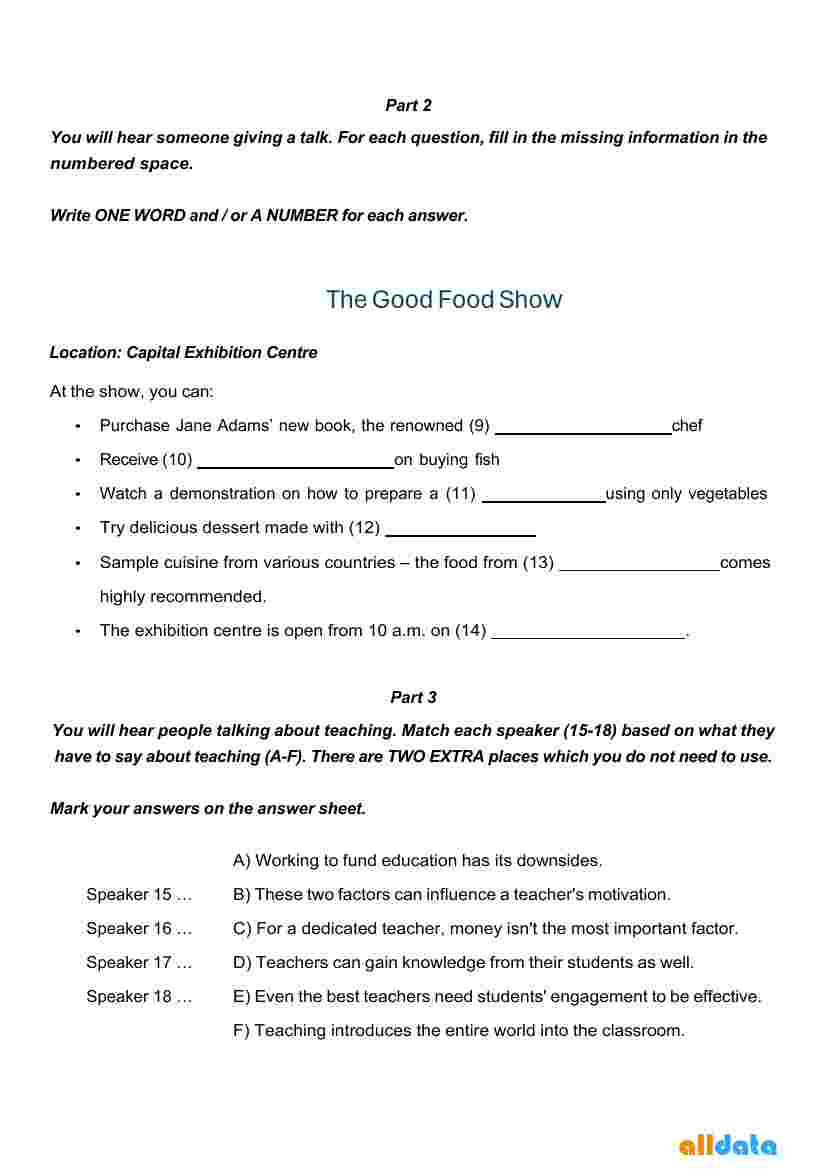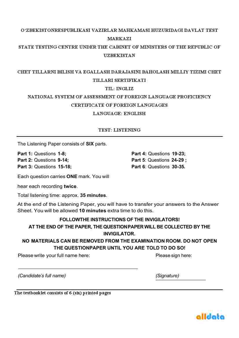 At the end of the Listening Paper, you will have to transfer your answers to the Answer Sheet. You will be allowed 10 minutes extra time to do this.