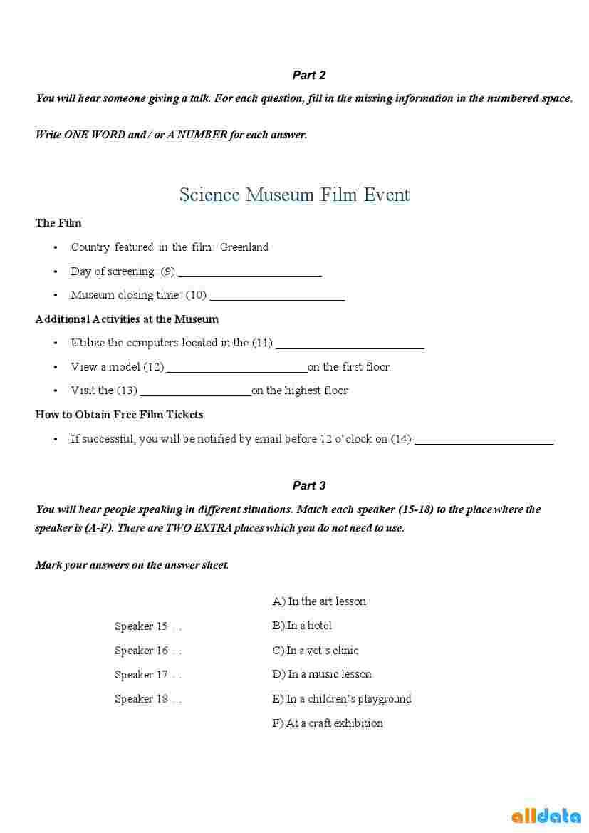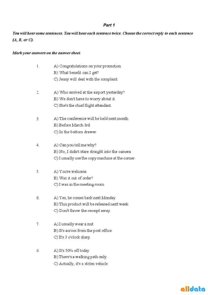 At the end of the Listening Paper, you will have to transfer your answers to the Answer Sheet. You will be allowed 10 minutes extra time to do this.
