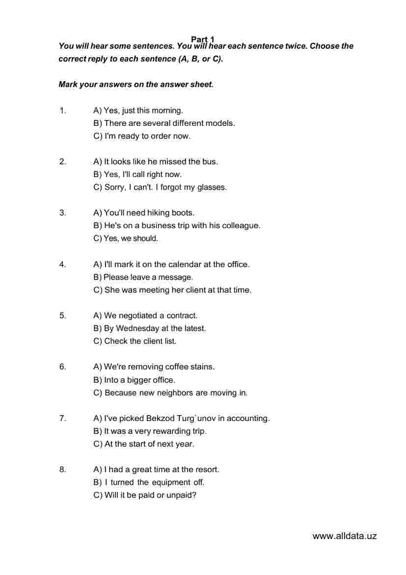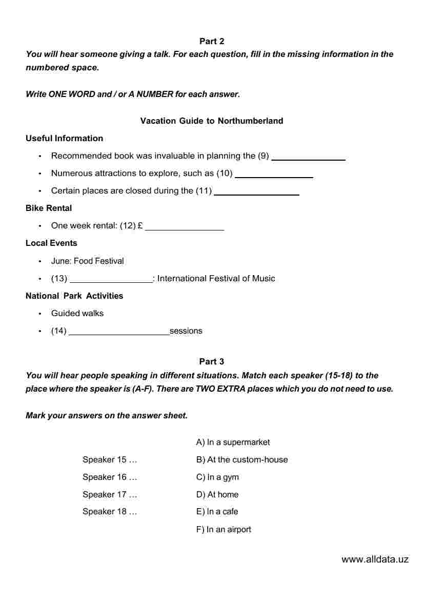At the end of the Listening Paper, you will have to transfer your answers to the Answer Sheet. You will be allowed 10 minutes extra time to do this.