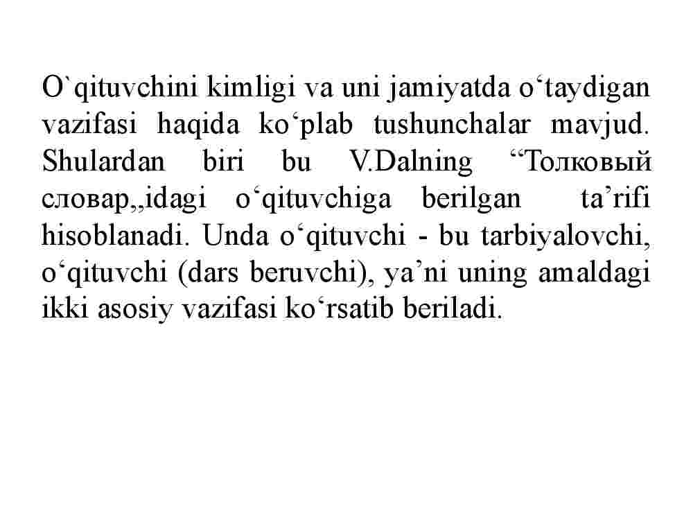1. Jamiyatda o’qituvchining tutgan o’rni va vazifalari