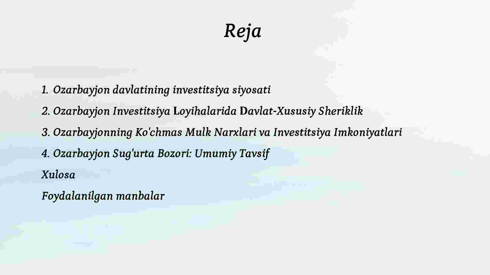 Ozarbayjon Investitsiya Loyihalarida Davlat-Xususiy Sheriklik