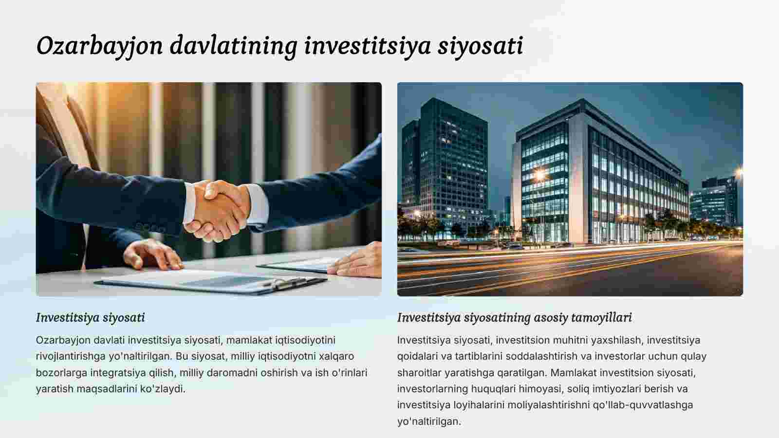 Ozarbayjon davlatining investitsiya siyosati