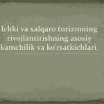 3. O‘zbekiston ekoturizmi bo‘yicha faoliyat olib borayotgan tashkilotlar, muammolar va ularni yechish.