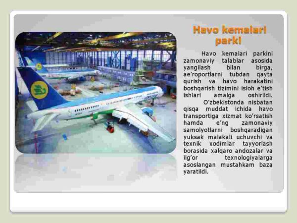 Havo transporti, aviatsiya transorti – yo’lovchilar, pochta va yuklarni havo yo’llari orqali tashishni amalga oshiradigan transport turi. Uning afzalligi shundaki, yuqori uchish tezligi hisobiga tashish vaqtini juda tejaydi, yer va suv yo’llari bo’lmagan manzillar bilan bevosita transport aloqasini yo’lga qo’yish imkoniyatlarini yaratadi.