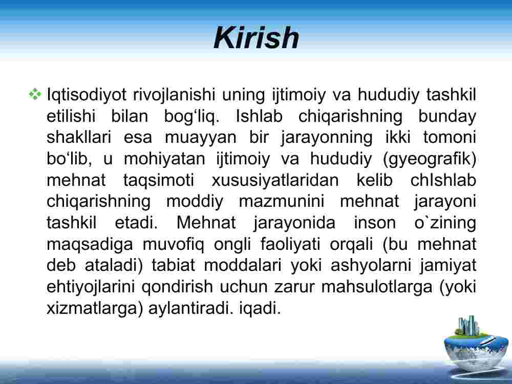 1. Ishlab chiqarish jarayoni haqida tushuncha.