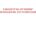 Reja: 1. Tafakkur haqida tushuncha. 2. Tafakkur operatsiyalari. 3. Tafakkur shakllari. 4. Tafakkur turlari.