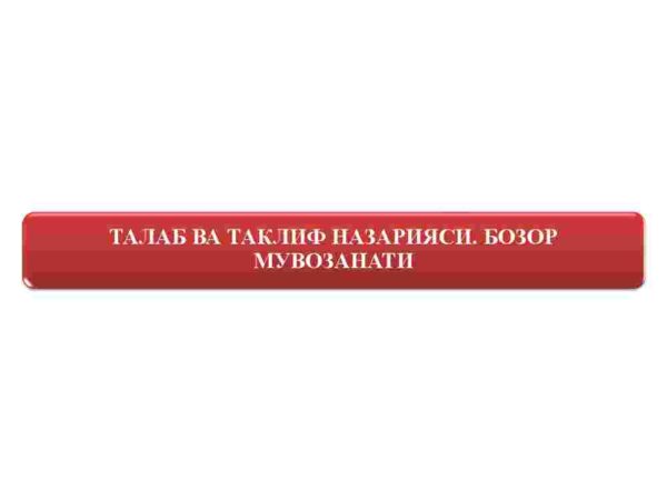 2. Taklif tushunchasi. Taklif miqdoriga ta’sir qiluvchi omillar. Taklif qonuni.