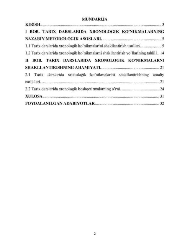 II BOB. TARIX DARSLARIDA XRONOLOGIK KO’NIKMALARNI SHAKLLANTIRISHNING AHAMIYATI