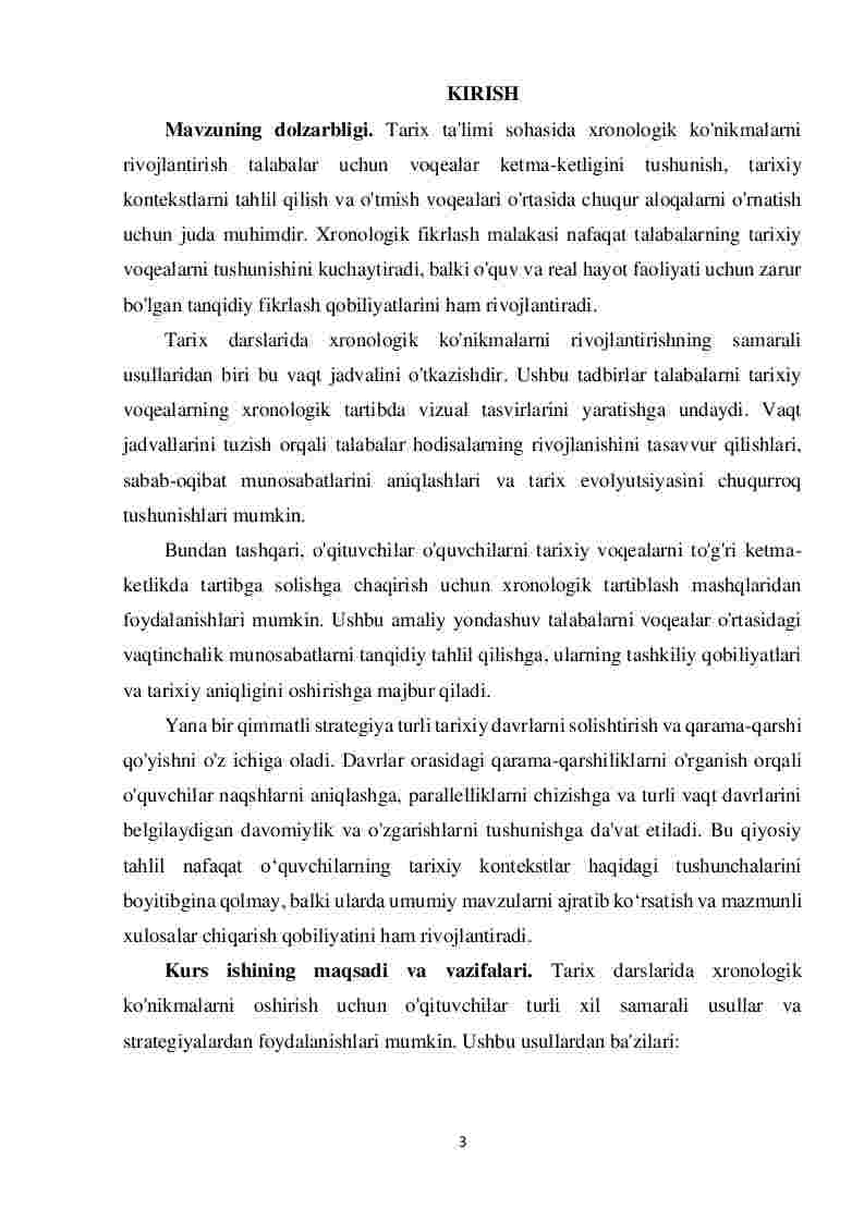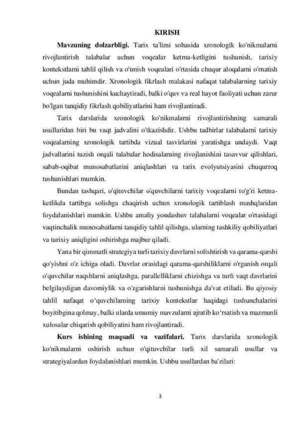 1.1 Tarix darslarida xronologik ko’nikmalarini shakllantirish usullari
