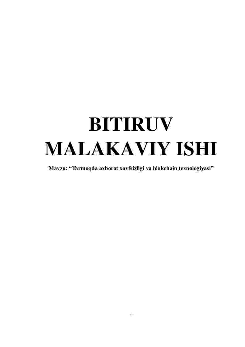 I BOB TARMOQDA AXBOROT XAVFSIZLIGI VA BLOKCHAIN TEXNOLOGIYASI