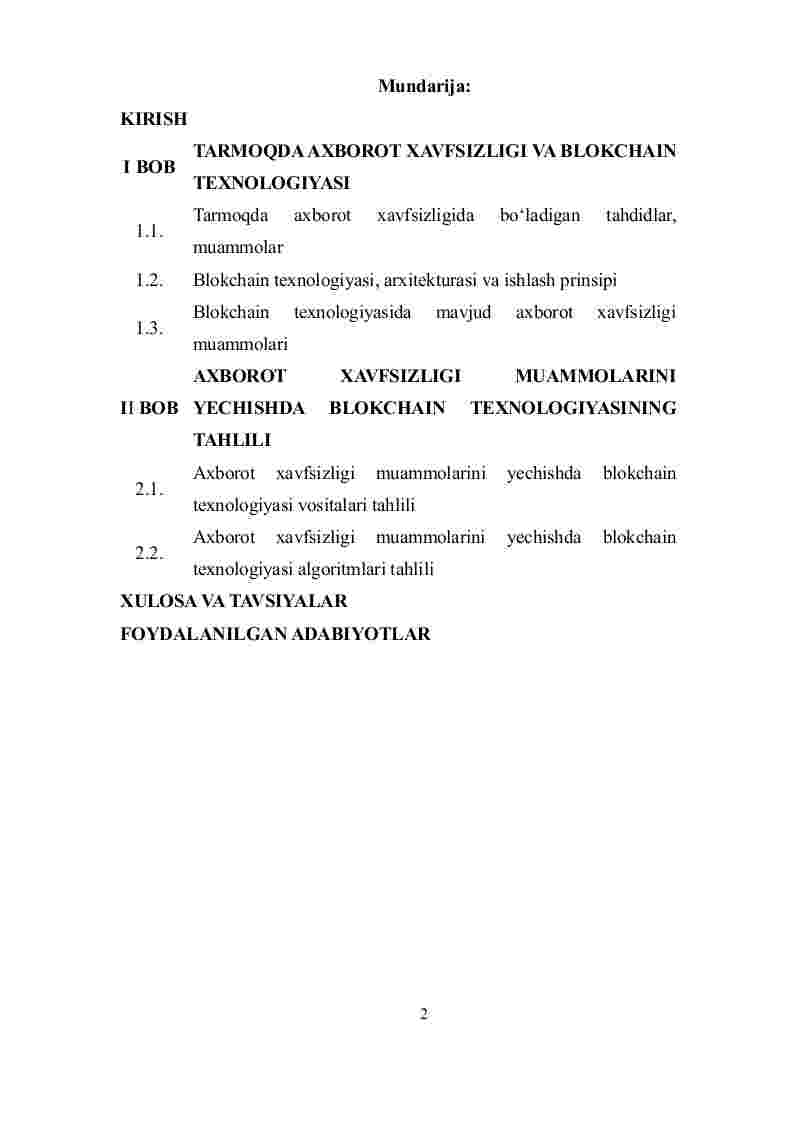 II BOB AXBOROT XAVFSIZLIGI MUAMMOLARINI YECHISHDA BLOKCHAIN TEXNOLOGIYASINING TAHLILI