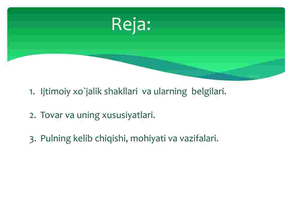 Ijtimoiy xo`jalik shakllari va ularning belgilari.