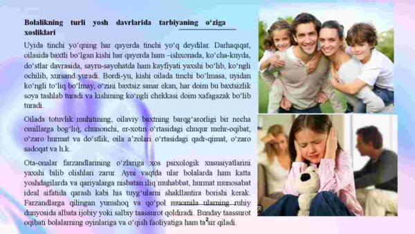 Bolalikning turli yosh davrlarida tarbiyaning o‘ziga xosliklari