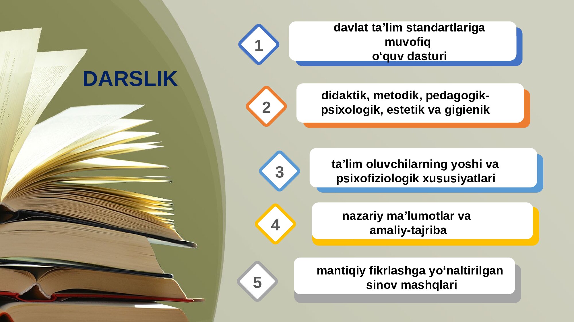 didaktik, metodik, pedagogik-psixologik, estetik va gigienik