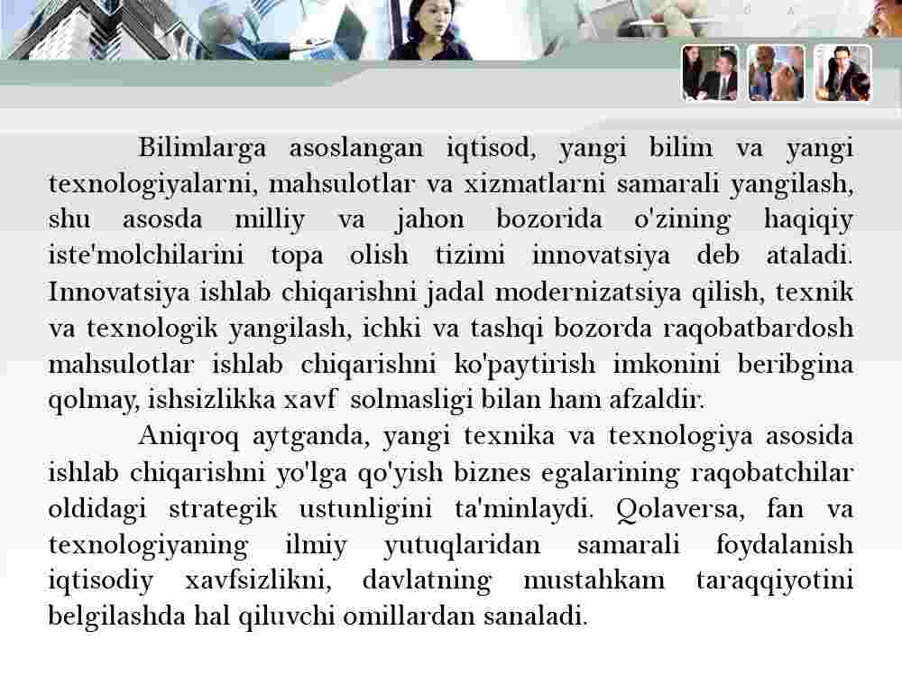 4. O’zbekistonning uzoq muddatli innovatsion taraqqiyot strategiyasi